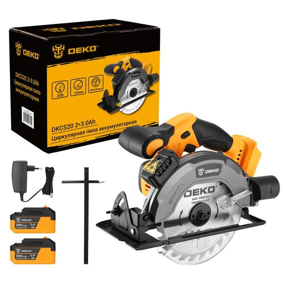 Циркулярная аккумуляторная пила DEKO DKCS20, 20В, 165мм, 2*3.0Ач используется для создания прямолинейных пропилов в древесине и пластмассе. Возможна регулировка глубины резания и угла наклона. Благодаря компактной конструкции удобна для работы в труднодоступных местах.