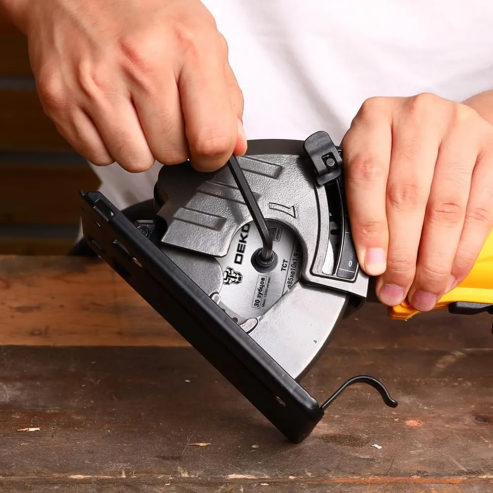 Дисковая (циркулярная) пила DEKO CS1050-D в кейсе предназначена для прямолинейного пиления листовых древесных материалов малой толщины – паркет, ламинат, плиты ДСП и пр.