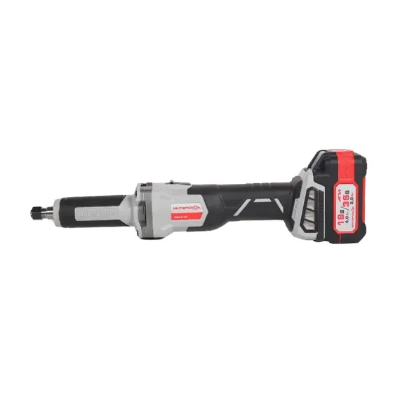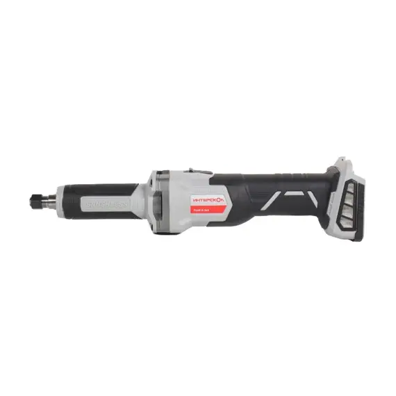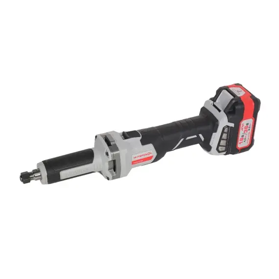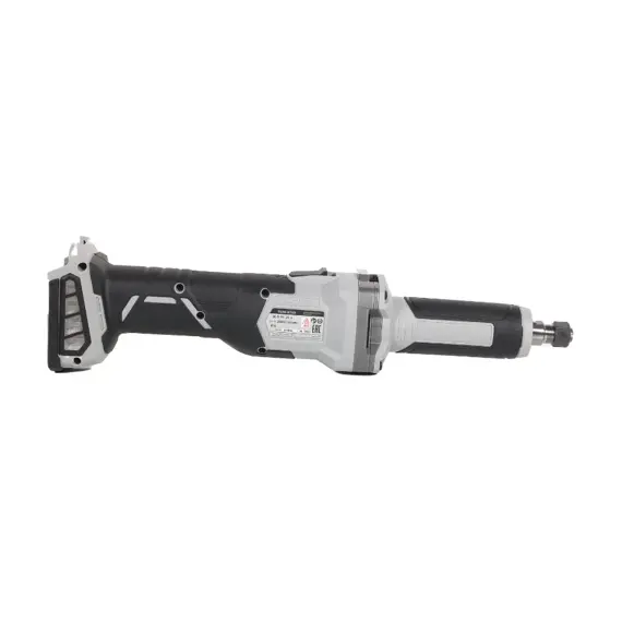 Прямошлифовальные машины предназначены для выполнения различных операций с применением борфрез, шлифовальных головок различных типов и т.д. С помощью соответствующей оснастки они могут в той или иной степени заменить целый ряд инструмента, в частности, дрель, фрезер и угловую шлифовальную машину. Но лучше всего способности прямошлифовальных машин раскрываются при обработке внутренних поверхностей труб, особенно небольшого диаметра, полостей на деталях (расточка, углубление, шлифовка, полировка, изменение формы), а также при решении прочих подобных задач. Питание от аккумуляторных батарей (АКБ) с высокотоковыми аккумуляторами и применение инновационного бесщеточного двигателя с цифровым управлением делают инструмент максимально мобильным и удобным в использовании при сохранении достаточной мощности на уровне сетевых . Модель имеет цанговый зажим под оснастку с хвостовиком 6 мм, а шпиндель опирается на надежные и долговечные подшипники качения. Ползунковый выключатель с блокировкой непреднамеренного включения, функция плавного пуска и обрезиненный корпус в местах хвата обеспечивают безопасность и удобство работы.
