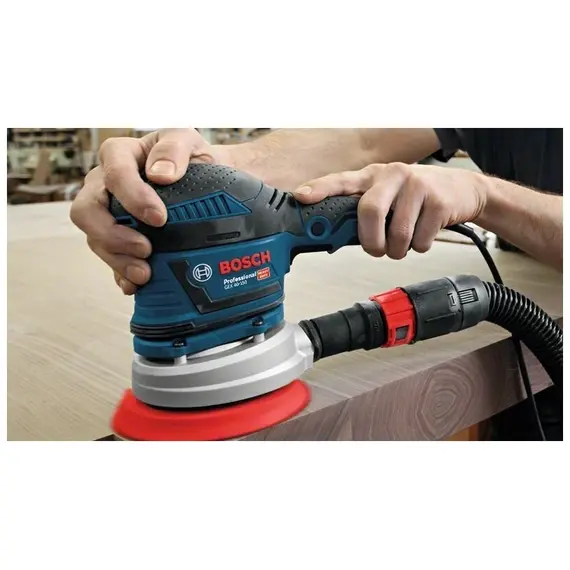 картонная коробка, 1 шлифлист с перфорацией C470, Best for Wood + Paint, 120, тарельчатый шлифкруг (150 мм), блок системы микрофильтрации, дополнительная рукоятка, ключ с внутренним шестигранником