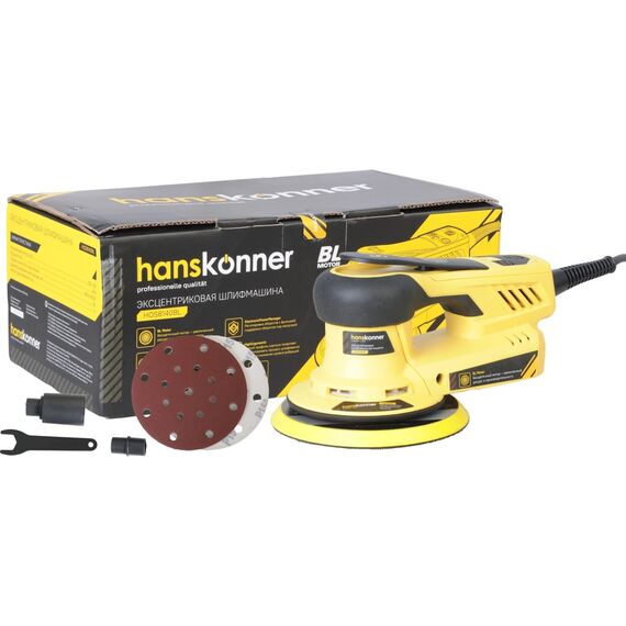 Эксцентриковая шлифовальная машинка Hanskonner HOS8140BL — компактный и удобный электроинструмент для шлифования поверхностей из различных материалов, очистки от ржавчины, лака, краски или остатков грунтовки. Эксцентриковый ход предотвращает повреждение поверхности, так как на каждом новом обороте меняется траектория абразивных частиц. Данная модель оснащена константной электроникой, которая повышает мощность при увеличении нагрузки, чем способствует продуктивной работе. Вместе с тем надежный бесщеточный двигатель содействует росту как производительности, так и рабочего ресурса.