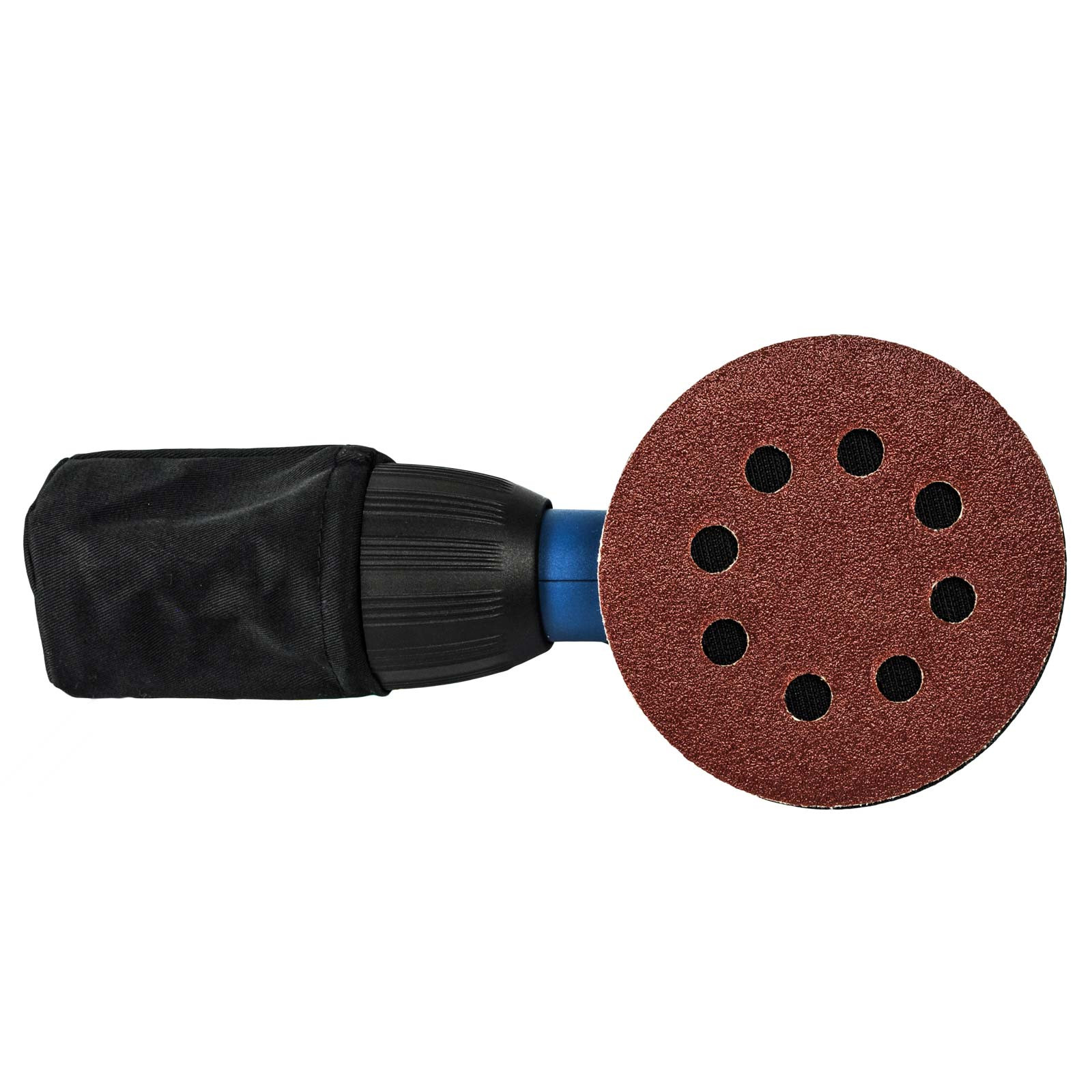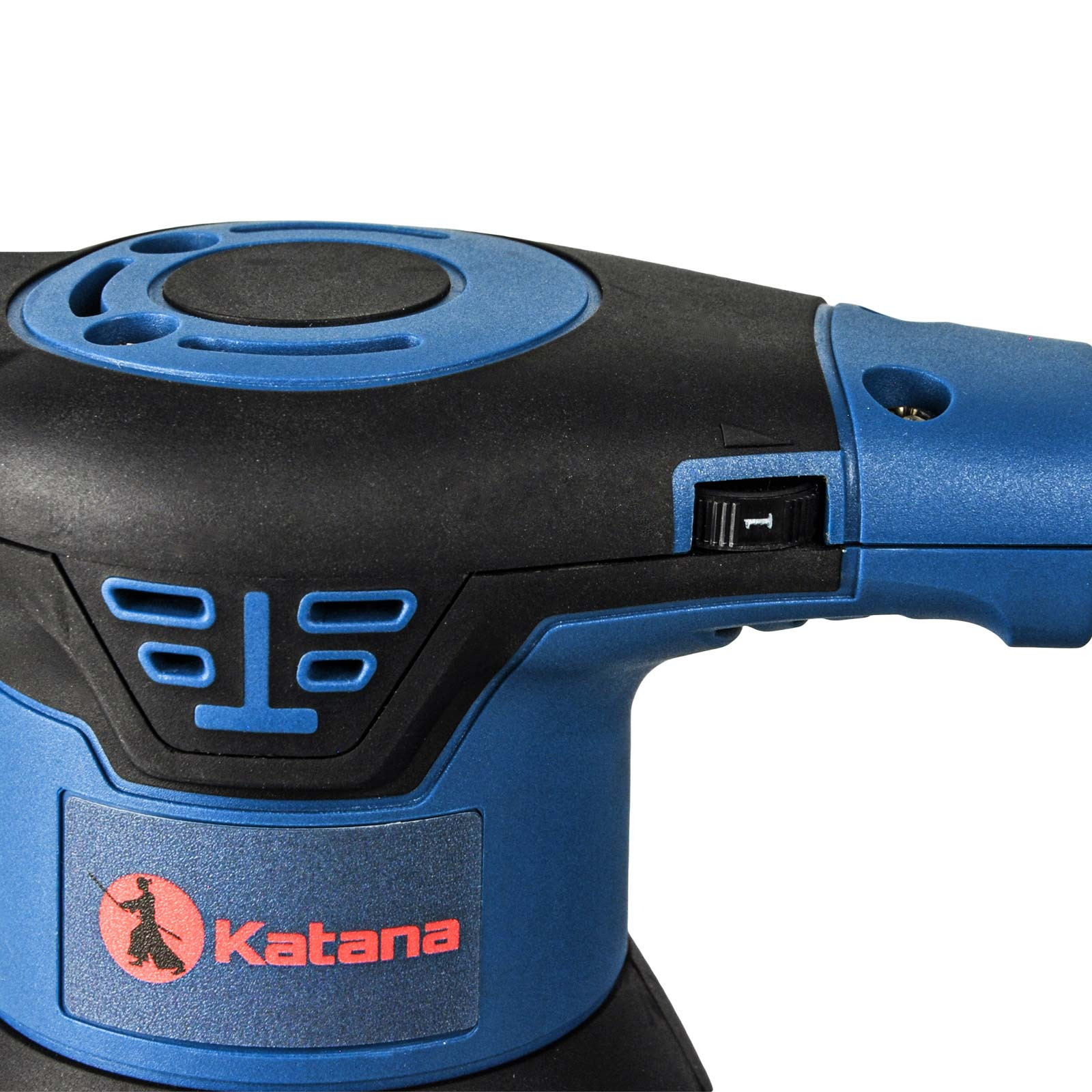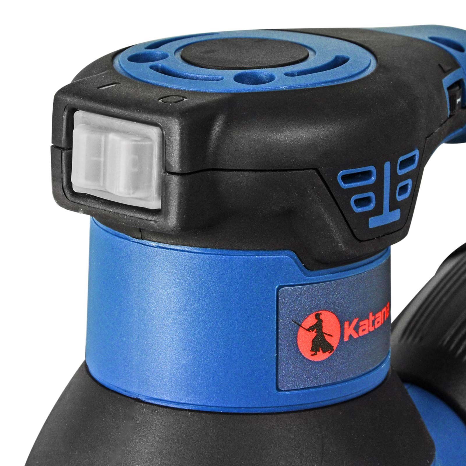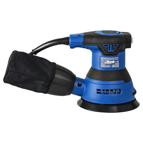 Эксцентриковая шлифмашина оснащена обрезиненной рукоятью, которая не скользит в руках и повышает удобство при работе. Пыль собирается в специальный мешок, что позволяет поддерживать чистоту на рабочем месте. В качестве оснастки обычно применяются абразивные круги диаметром 125 мм.