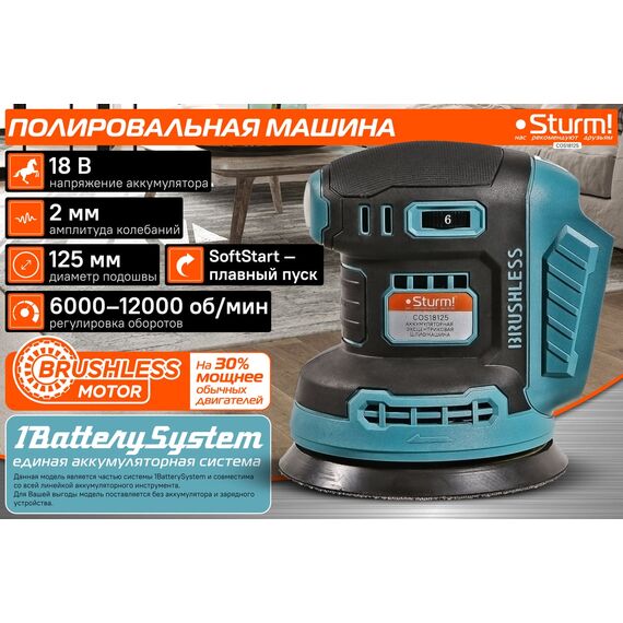 Шлифмашина аккум Sturm! COS18125 без АКБ и ЗУ