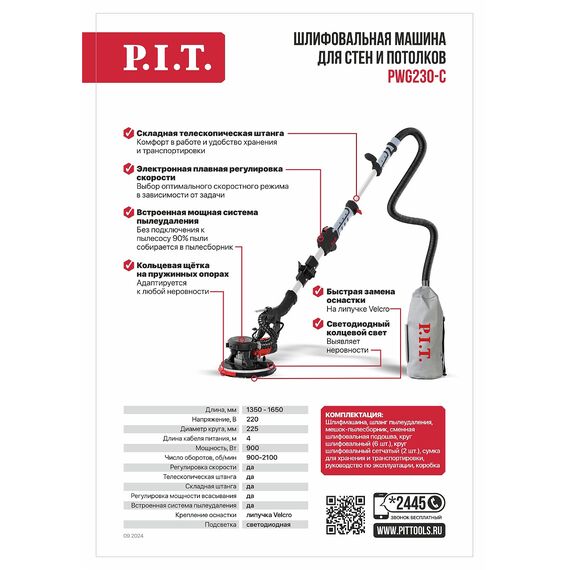 Шлифмашина для стен и потолков P.I.T PWG230-C