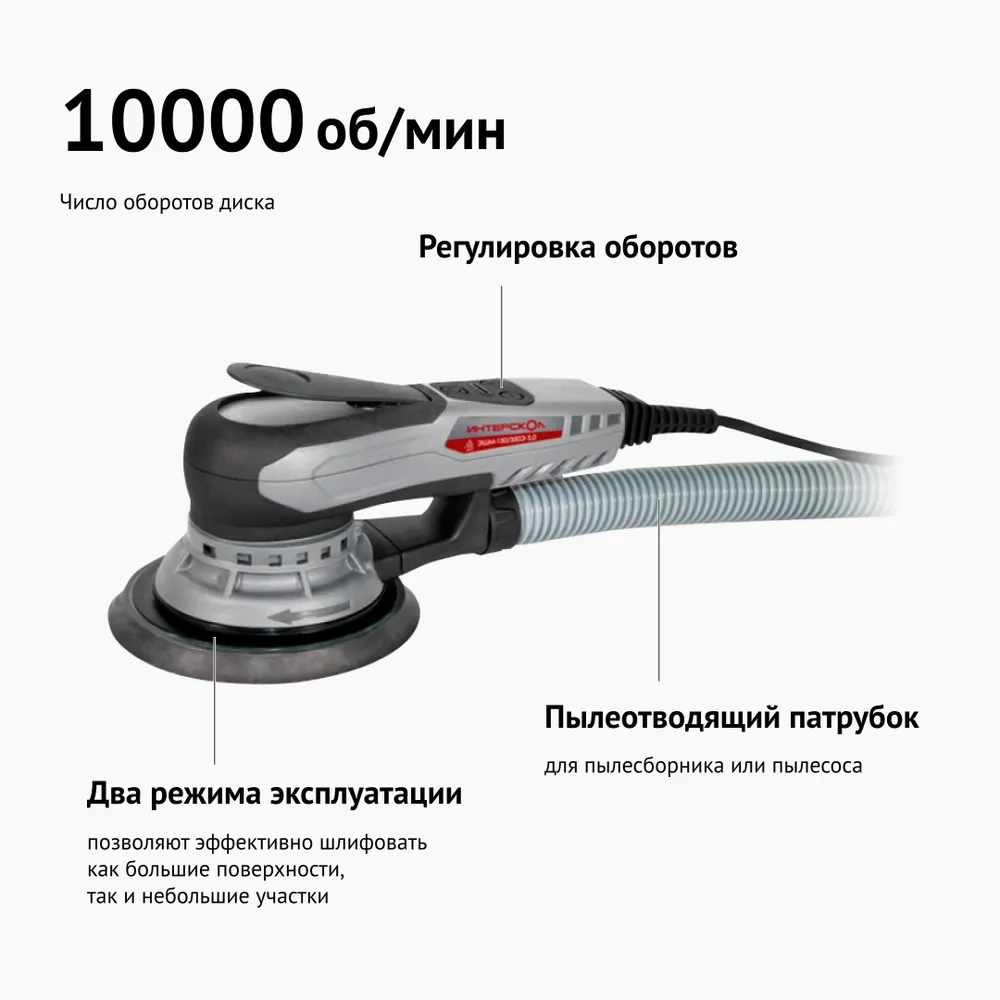 Эксцентриковые профессиональные шлифмашины ИНТЕРСКОЛ ЭШМ-150/350Э оборудованы бесщеточным (вентильным) сетевым двигателем, работающим под управлением цифрового электронного блока. Повышенный коэффициент полезного действия двигателя и отсутствие редуктора обеспечивают шлифмашине высокую энергоэффективность и рекордно малый вес. В сочетании со схемой динамической балансировки это снижает массу изделия и позволяет оператору машины эффективно шлифовать длительное время не уставая. Эквивалентная мощность в пересчете на традиционную схему с коллекторным двигателем и редуктором составляет 600Вт, что достаточно практически для всех операций эксцентрикового шлифования. Продуманная конструкция пылеудаления при эксплуатации с пылесосом удаляет практически всю образующуюся при шлифовке пыль, повышая качество шлифовки и сохраняя чистоту на рабочем месте. Регулировка оборотов от 4000 об/мин до 10000 об/мин с шагом 1200 от/мин, эксцентриситет от 5,0мм и тормоз тарелки обеспечивает как высокую эффективность шлифовки, так и финишное качество поверхности, потому что частицы абразива каждый раз проходят по новой траектории.
