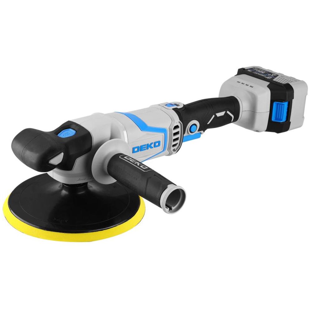 Аккумуляторная шлифовальная машина Deko CPDU20 PRO (180 мм, 20В, 1x4.0Ач) 083-1033 — мощный инструмент, предназначенный для полировки и шлифовки различных лакокрасочных и полимерных покрытий.