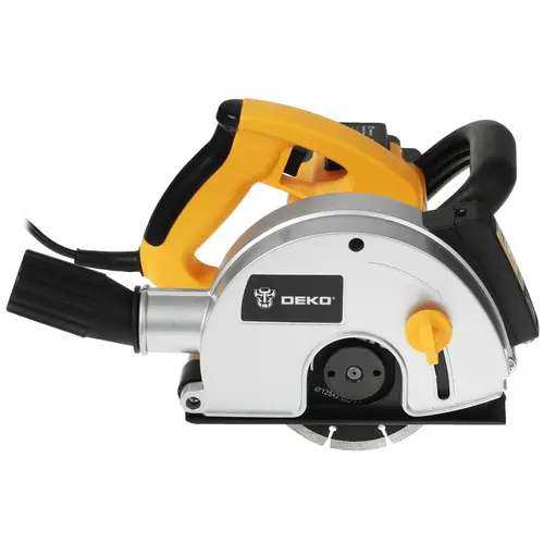 Прибор DEKO DKWC1800 поставляется в коробке с защитным кожухом, ключом, лопаточным долотом, двумя алмазными дисками и двумя батарейками для лазера. Мощности штробореза хватит для создания пропила глубиной 1.4-2.8 см и шириной 2.9 см. Для работы подойдут диски диаметром 12.5 см со стандартной посадкой 2.22 см.