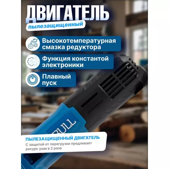 Инструмент оснащен защитой от перегрузки, плавным пуском, константной электроникой и защитой от непреднамеренного пуска(при возобновлении подачи тока в сети).