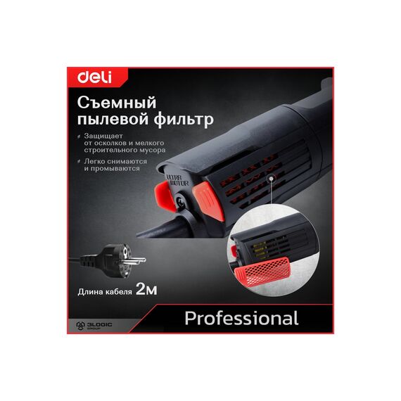 УШМ оснащена двигателем «Ultra Motor» – это эксклюзивная запатентованная технология собственной разработки компании Deli tools. Она обеспечивает повышенную мощность и эффективность работы, а также снижает уровень вибрации. Это позволяет мастеру проводить длительные работы с меньшим утомлением и повышает качество выполняемых работ.