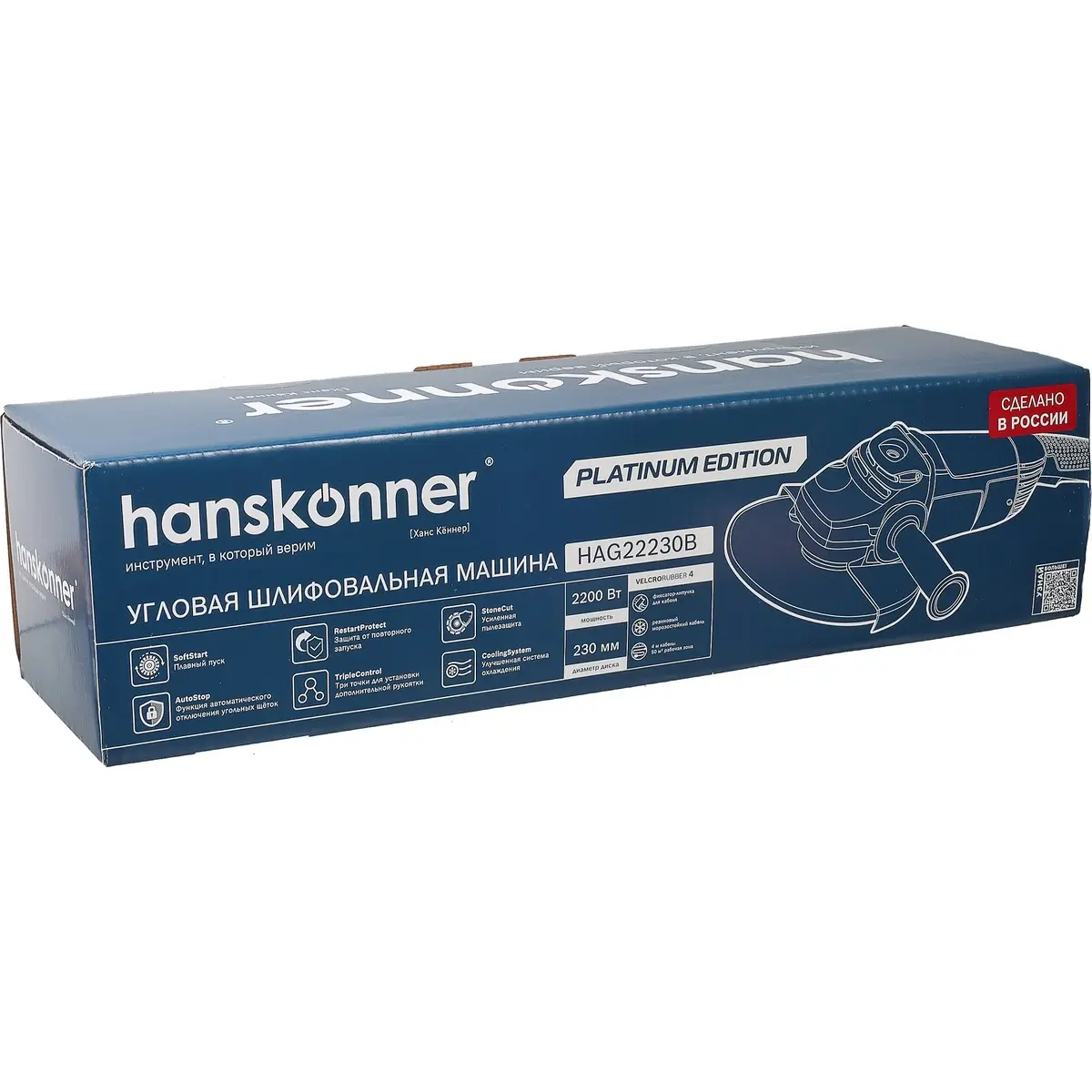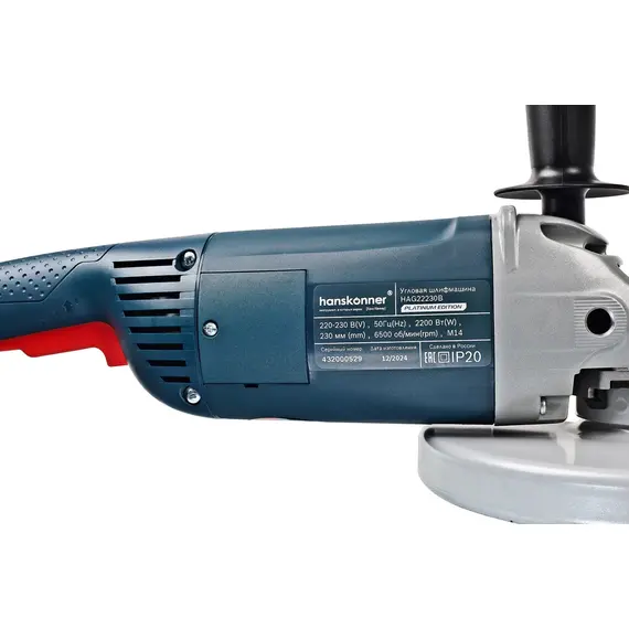 Угловая шлифовальная машина Hanskonner HAG22230B — маневренный и мощный электроинструмент для шлифования и зачистки поверхностей, а также резки металлов, кирпича, керамики или камня без использования воды. Данная модель имеет улучшенную систему охлаждения и пылезащиты, что повышает продуктивность и рабочий ресурс. Также, ресурс инструмента, подкреплен функцией плавного пуска. Практичности в обращении с инструментом содействует поворотная задняя рукоять.