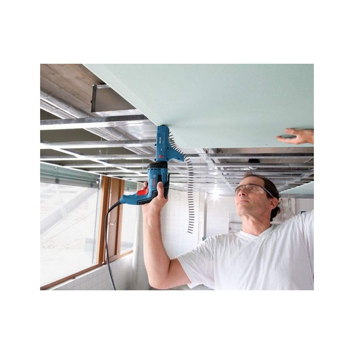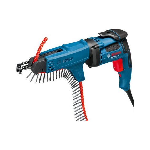 Шуруповерт Bosch GSR 6-45 TE + MA 55 Professional 0.601.445.101 применяется при ремонтных, реставрационных и строительных работах для заворачивания и выворачивания крепежа в гипсокартонные плиты. Инструмент имеет высокую частоту вращения для повышения производительности и оснащен специальной магазинной насадкой MA 55, которая обеспечивает возможность серийного заворачивания шурупов. Для более простой и быстрой работы установка насадки производится безинструментально.