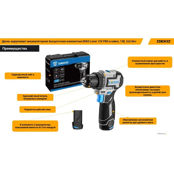 Дрель-шуруповерт аккумуляторный Deko Loner 12V Pro 085-1011 с акк и ЗУ
