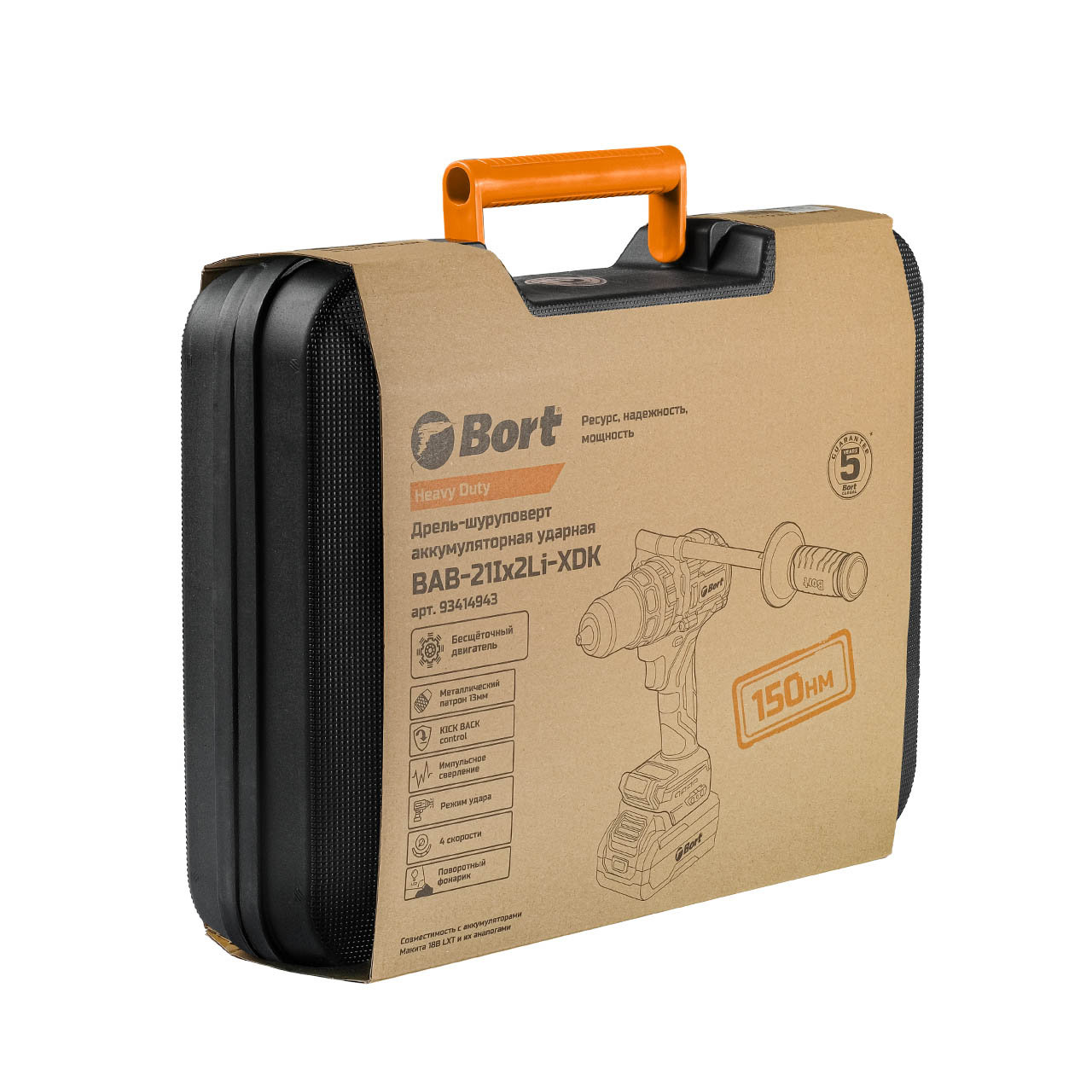 Дрель-шуруповерт Bort BAB-21IX2LI-XDK с АКБ и ЗУ