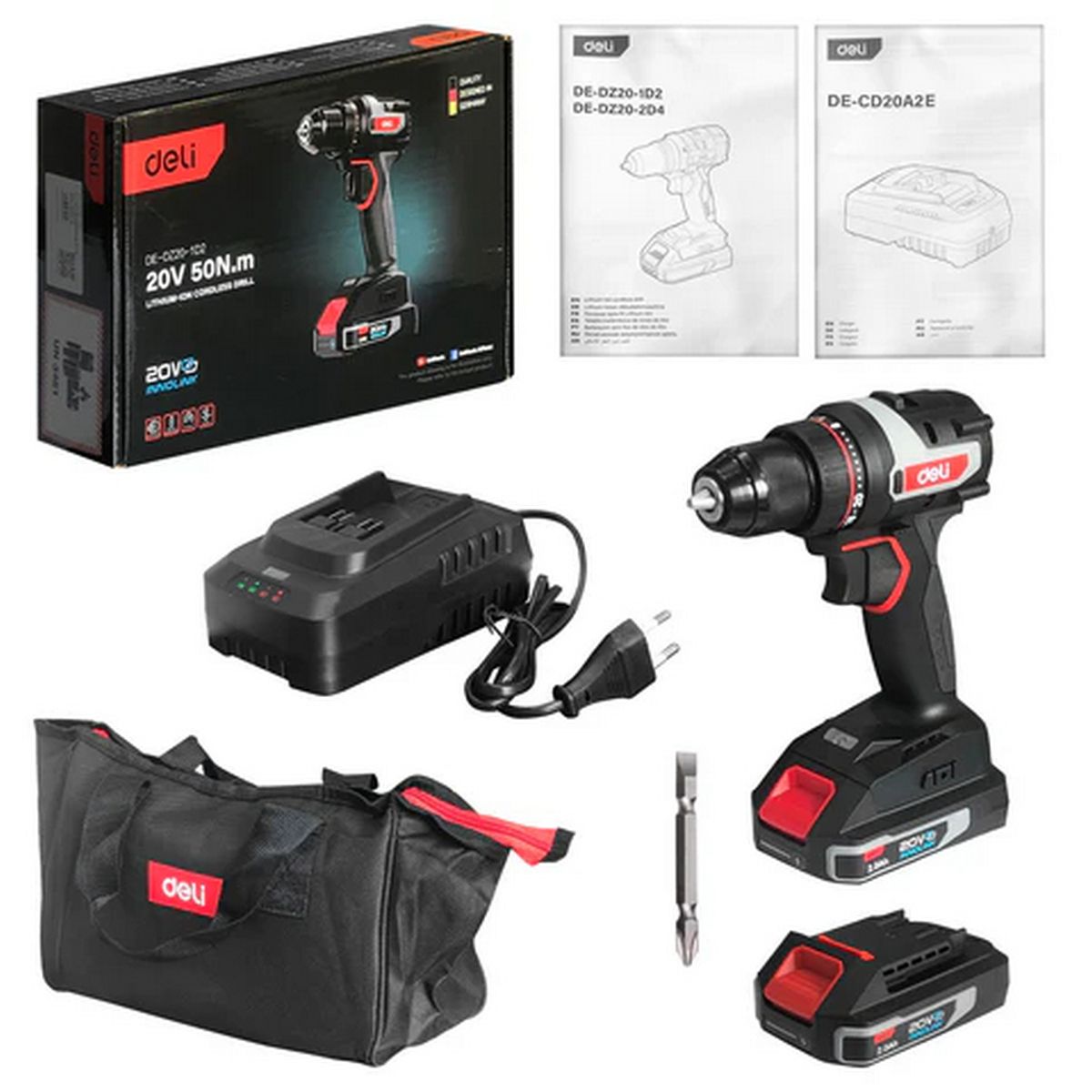 Дрель-шуруповерт Deli DE-DZ20-1D2 2АКБ*2Ач+ЗУ