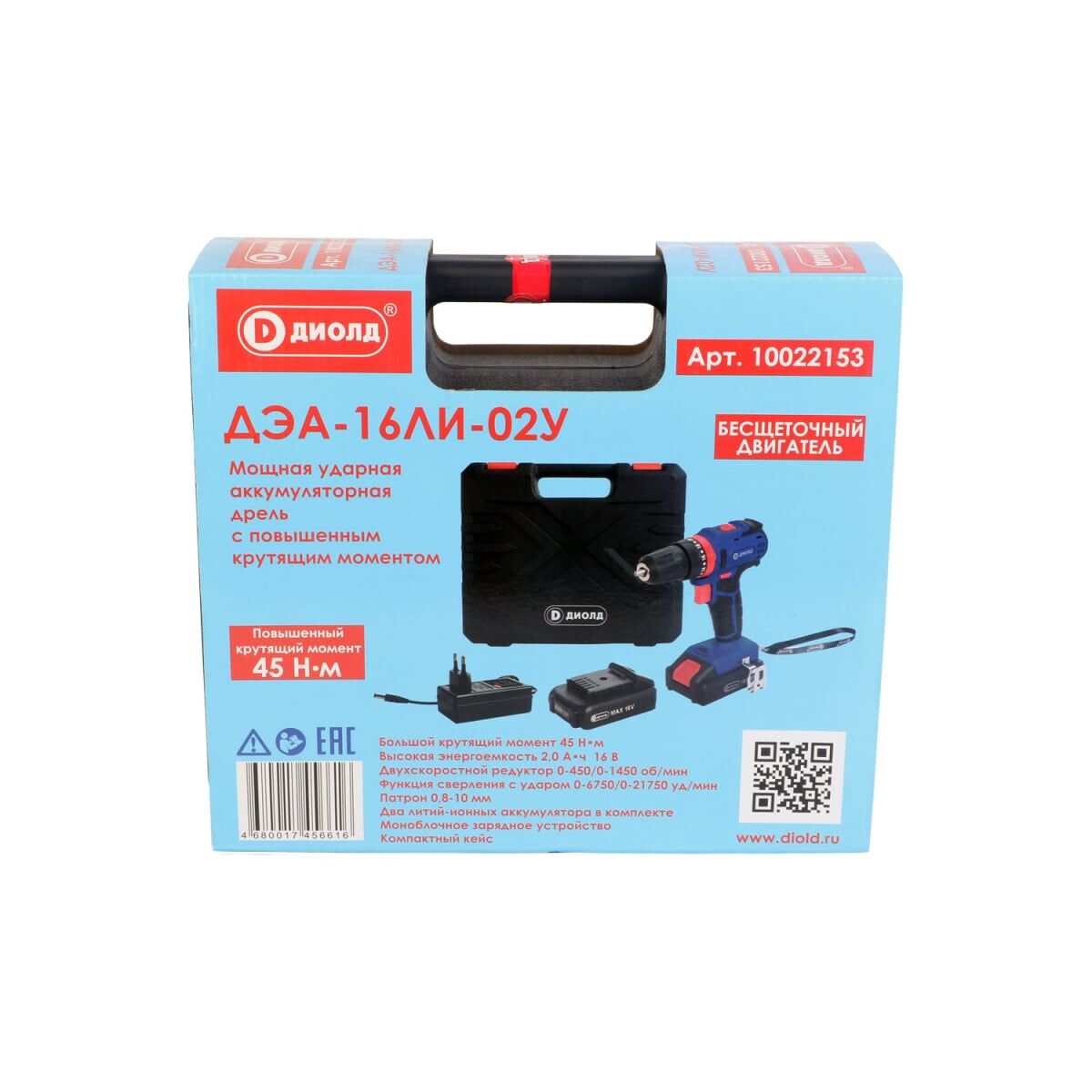 Дрель-шуруповерт ДИОЛД ДЭА-16 ЛИ-02 У (10022153) 2Ач, с двумя аккумуляторами