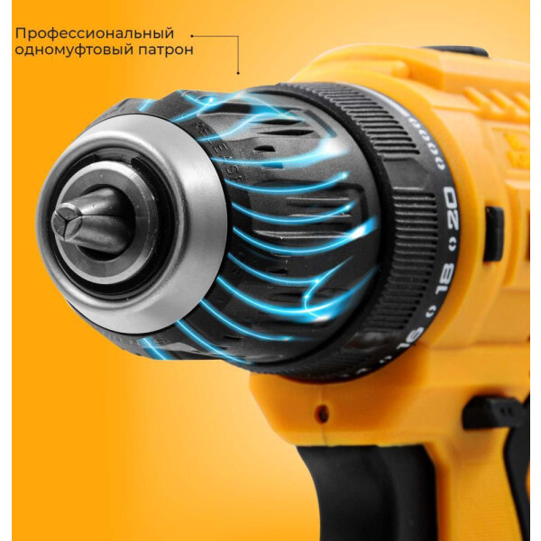 Дрель-шуруповерт с бесщеточным двигателем для сверления и монтажных работ. Благодаря работе от 21 В аккумулятора годится для работы в удаленных от розетки местах. Максимальный крутящий момент – 60 Нм. Подходит для обработки дерева, металла и пластика.