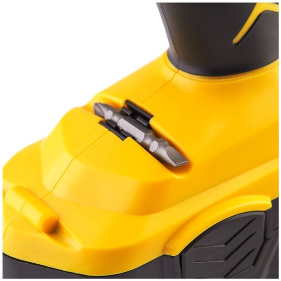 блокировка кнопки включения, гнездо в корпусе для крепления бит