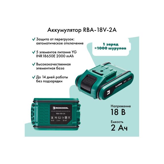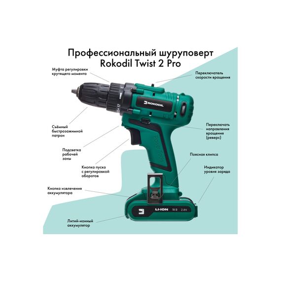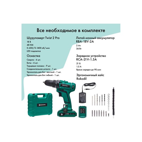 Дрель-шуруповерт Rokodil Twist 2 Pro (1045101) акумуляторная 2Ач (АКБ+ЗУ)