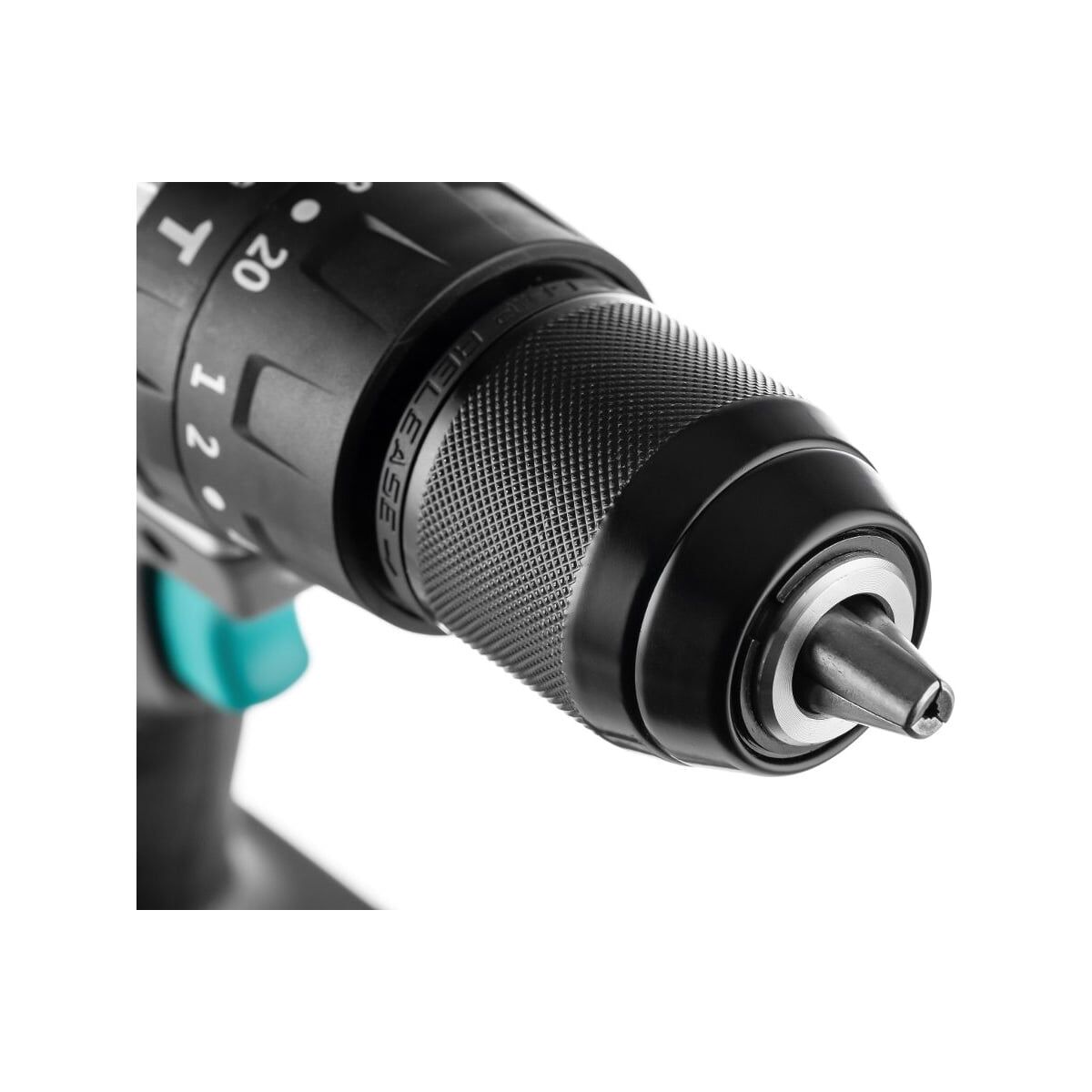 В комплект поставки входит дополнительный аккумулятор, благодаря чему повышается производительность изделия (пока один аккумулятор работает, второй заряжается). Особенностью моделью является БЗП патрон диаметром 13 мм с металлическим корпусом и автолоком - таким образом расширяется спектр подходящей оснастки и увеличивается надежность ее фиксации.