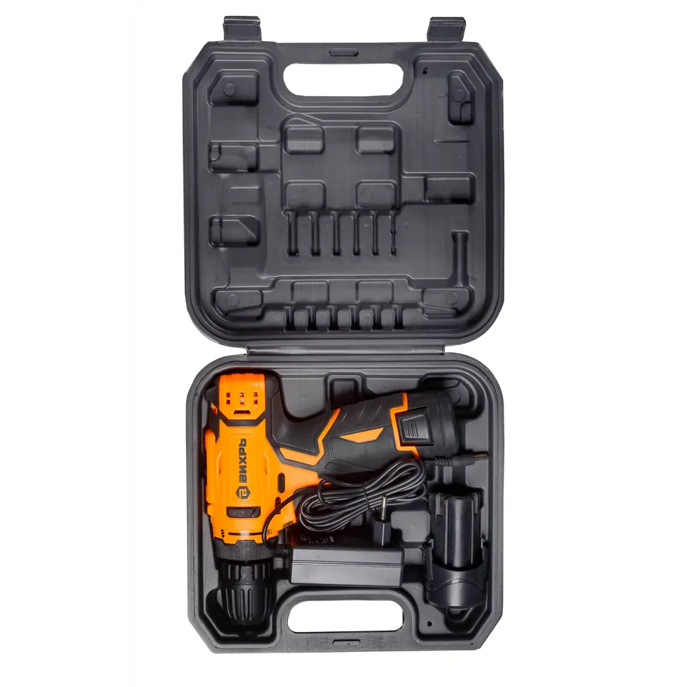 Аккумуляторная дрель-шуруповерт 2 аккумулятор Зарядное устройство Бита Инструкция Упаковка