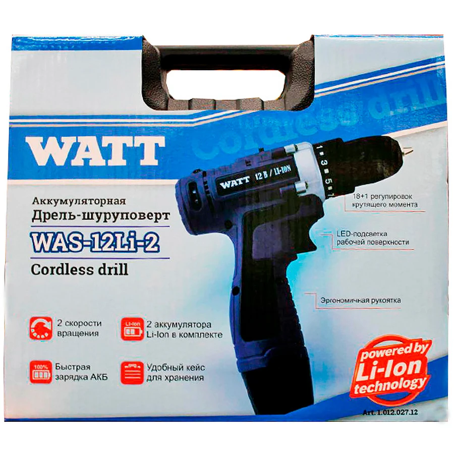 Дрель-шуруповерт Watt WAS-12 Li-2 (101202712) с 2мя АКБ