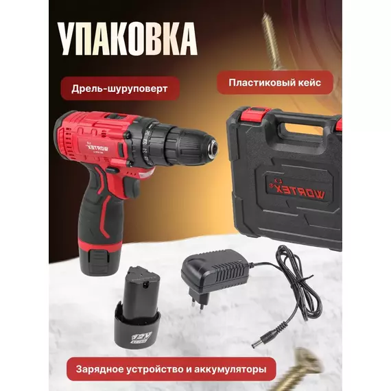 Дрель-шуруповерт Wortex LX BD 1215 Li (0329353) с 2-мя АКБ, кейс