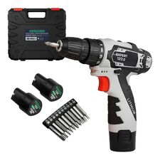 Тип Дрель-шуруповерт Тип питания От аккумулятора Функциональные особенности Реверс, Подсветка, Блокировка шпинделя, Ударный режим Конструктивные особенности Рукоятки с резиновым покрытием, Кейс в комплекте Режимы работы Сверление, Сверление с ударом Тип патрона...