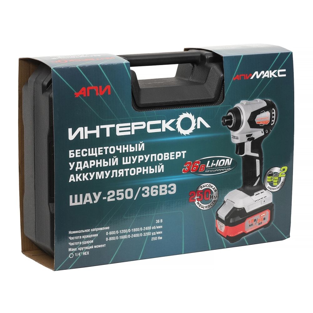 Шуруповерт аккумуляторный ИНТЕРСКОЛ ШАУ-250/36ВЭ (862.2.2.70) с акк и ЗУ