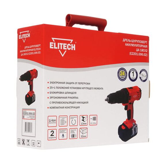 Шуруповерт ELITECH ДА 18 СЛ2 (4.0Ач) Е2201.006.02