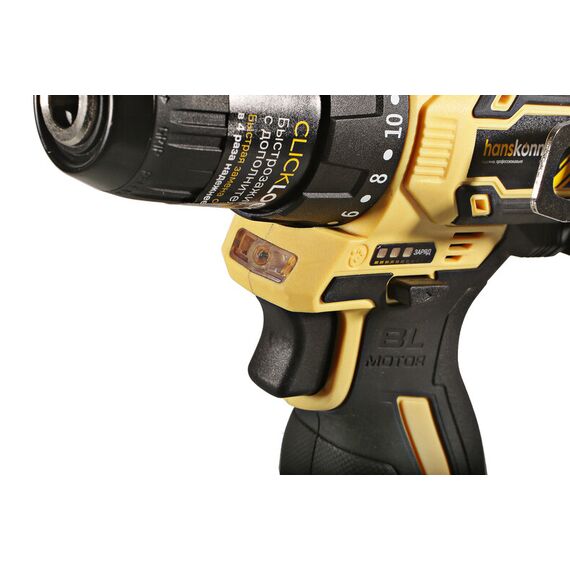 Аккумуляторная дрель-шуруповерт Hanskonner HCD1645BLC с бесщеточным двигателем — одна из самых мощных и компактных в своем классе.