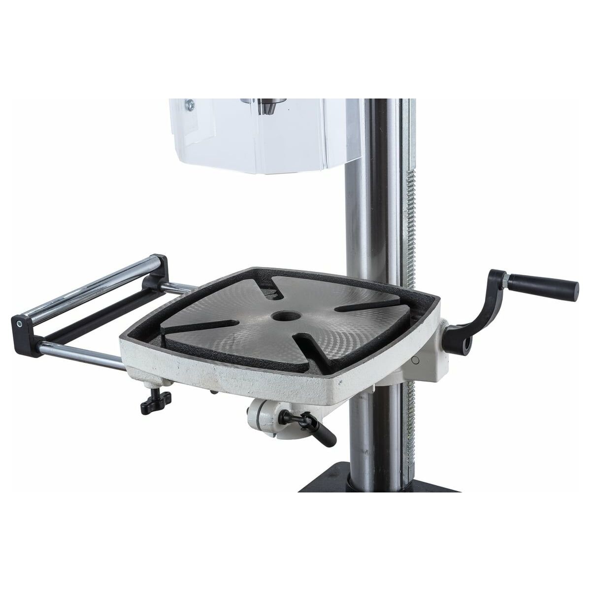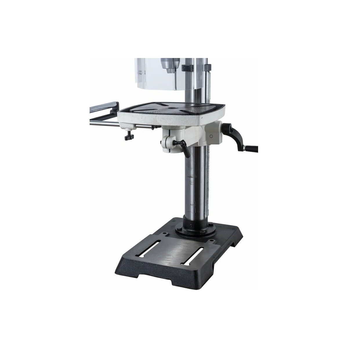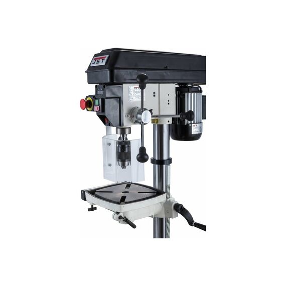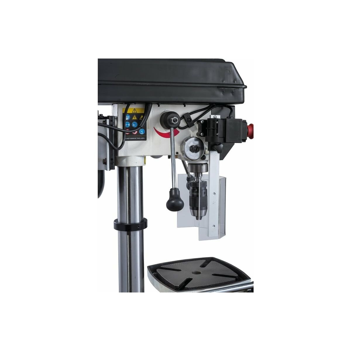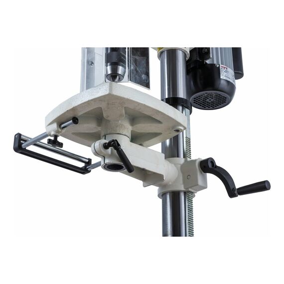 Сверлильный станок JET JWDP-12 716000M - универсально оборудование для высверливания отверстий в дереве или металле. Отличительной особенностью устройства является клиноременная передача, которая позволяет плавно регулировать скорость вращения шпинделя. Модель оснащается чугунным столом с Т-образными пазами для крепления тисков. Дополнительные конструктивные особенности, такие как ограничитель глубины сверления, специальный лазерный указатель сверления, светодиодный фонарь обеспечивают комфорт и удобство в работе. Быстрозажимной сверлильный патрон гарантирует легкую и быструю замену сверла.