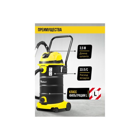 Пылесос строительный 35 л Kolner KVC 35L-FS — это мощный и надёжный инструмент, который станет незаменимым помощником при проведении строительных, ремонтных или отделочных работ.
