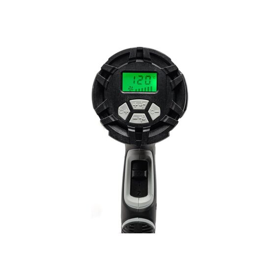 Наличие режимов управления потоком воздуха от 300 до 500 л/мин позволяет настраивать интенсивность работы инструмента в зависимости от используемого материала. Электронный дисплей отображает точные параметры температуры воздушной струи. Встроенное термореле защищает строительный фен от перегрева.