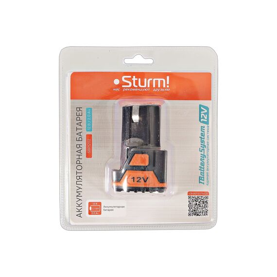 12-вольтовый аккумулятор SBP1202 Sturm! емкостью 2.0 Ач обеспечивает впечатляющую мощность при минимальных размерах и совместим с любым инструментом единой аккумуляторной системы 1BatterySystem12V.