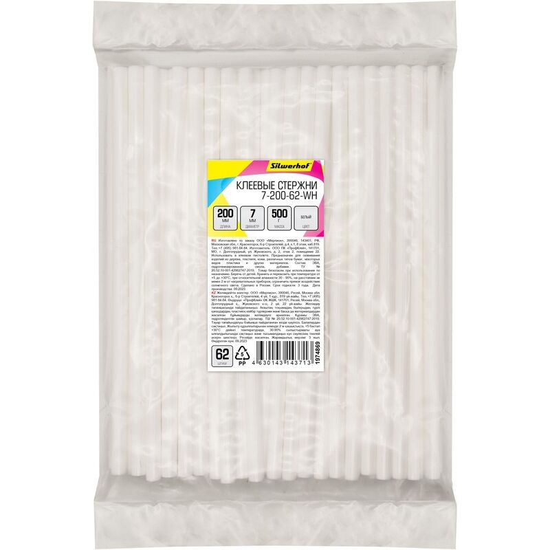 Cтержни клеевые для клеев. пистолета Silwerhof 7-200-62-WH L-200мм D7мм белый 62шт