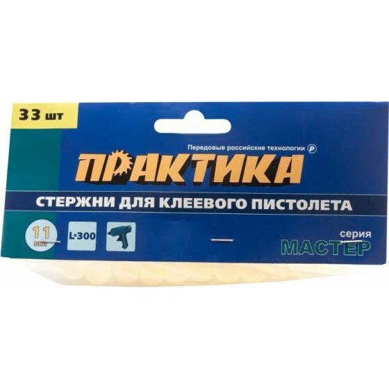 Клей белый, прозрачный (33 шт; 11х300 мм) для клеевого пистолета ПРАКТИКА 641-619 предназначен для прочного соединения деталей из картона, полимерных материалов, пластиков, резины, линолеума, кожи, ткани, керамики, фарфора, стекла. Температура плавления 85°С. Время застывания 35-45 с. Рекомендованная мощность пистолета от 30 Вт. Не содержит токсичных элементов.