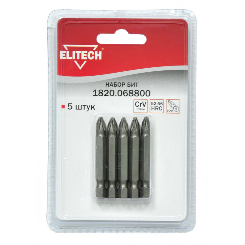 Набор бит ELITECH 1 820.0688 CrV, PZ2x50мм, блистер 5шт