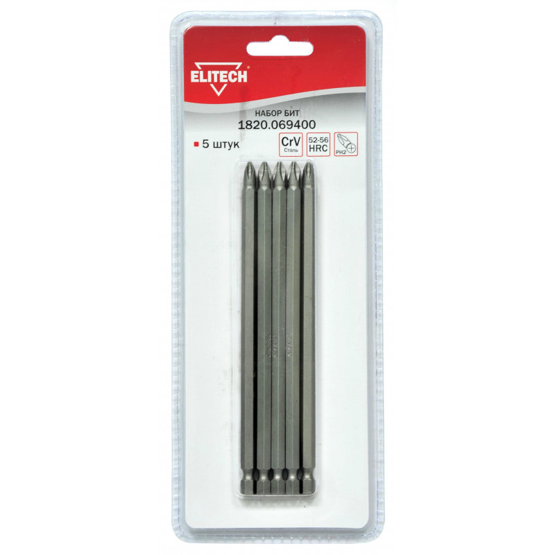 Набор бит ELITECH 1 820.0694 CrV, PH2x150мм, блистер 5шт