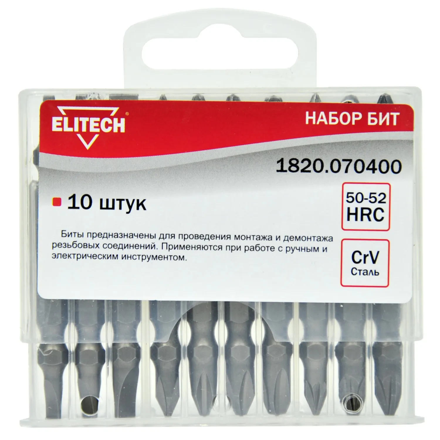 Набор бит ELITECH 1 820.0704 двусторонних, 65мм, пластиковый бокс, CrV, SL-SL(4,5,6), PH-PH(1,2,3),PZ-PZ(1,2)