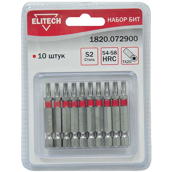 Набор бит ELITECH 1 820.0729 сталь S2, TORX 20x50мм, блистер 10шт