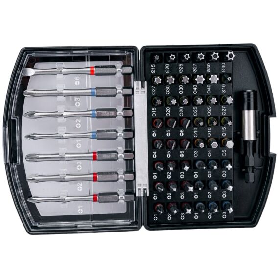 PH1; PH2; PH3; PZ1; PZ2; PZ3; SL4; SL5; SL6; HEX3; HEX4; HEX5; T10; T15; T20; T25; T27; T30; T40; TR10; TR15; TR20; TR25; TR27; TR30; TR40