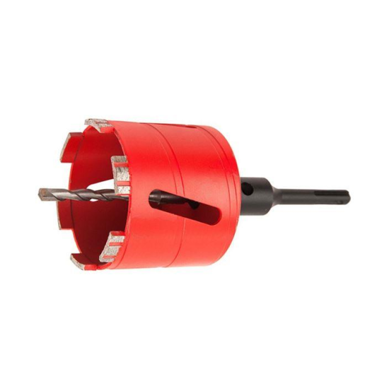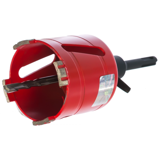 Конструкция сверла предусматривает наличие центрирующего сверла из твердого сплава с переходником М16-SDS+. Наличие четырех алмазных сегментов гарантирует высокую производительность при работе коронкой.
