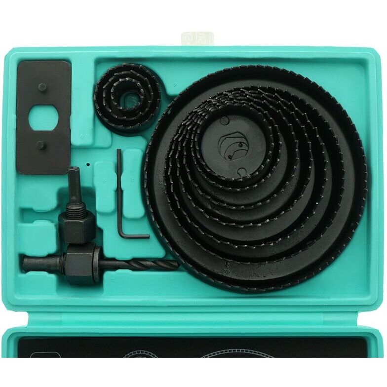 Коронки по дереву 12 шт.: 19 мм, 22 мм, 29 мм, 32 мм, 38 мм, 44 мм, 51 мм, 64 мм, 76 мм, 89 мм, 102 мм, 127 мм.