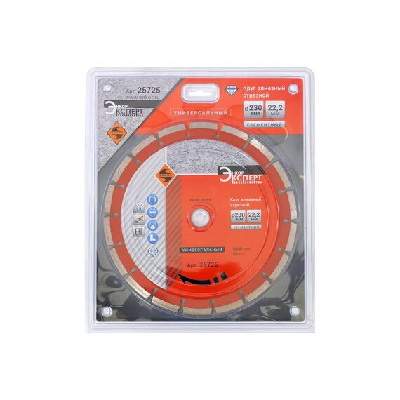 Круг алмазный сегментированный универсальный для сухой резки Энкор 25725 ф230x22,2мм 1/10/40