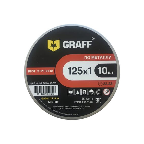 Технические характеристики отрезного круга по металлу GRAFF GADM 125 10 10