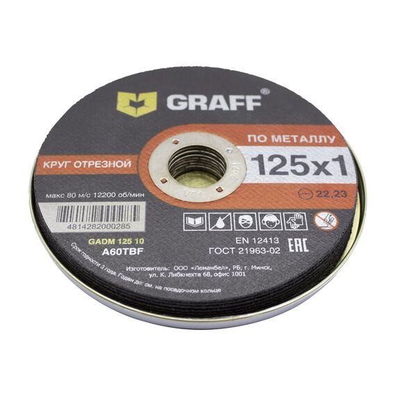 Круг отрезной по металлу GRAFF 9112510 125x1,0x22,23 мм