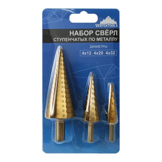 Набор ступенчатых сверел Vertex Tools 4-12-4-20-4-32 4-12мм, 4-20мм, 4-32мм