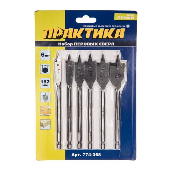 Набор сверл перовых Практика 774-368 6шт, блистер