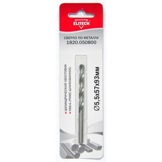 Сверло для металла ELITECH 1 820.1015 HSS, 5.5х57х93мм, хв-цилиндр 1шт