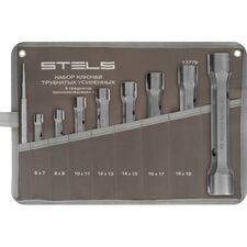 Набор торцевых усиленных ключей-трубок 9шт, CrV STELS 13779 представляет собой комплект прочных и долговечных в работе двусторонних инструментов для работы с болтами и шпильками, особенно, расположенными в труднодоступных местах. Для предотвращения утери компонентов при хранении и...